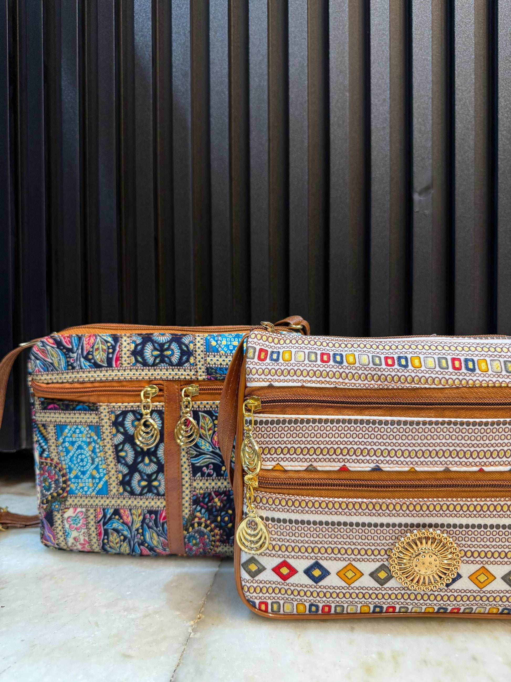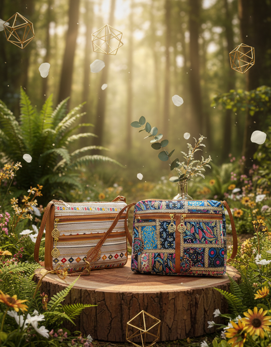 Step into the world of vibrant traditions with a modern twist! Our Boho Essence Dual-Tone Sling Bags are a must-have for every fashion-forward woman. With beautiful ethnic embroidery, eye-catching mirror work, and golden metal charm detailing, these bags blend style and utility effortlessly.