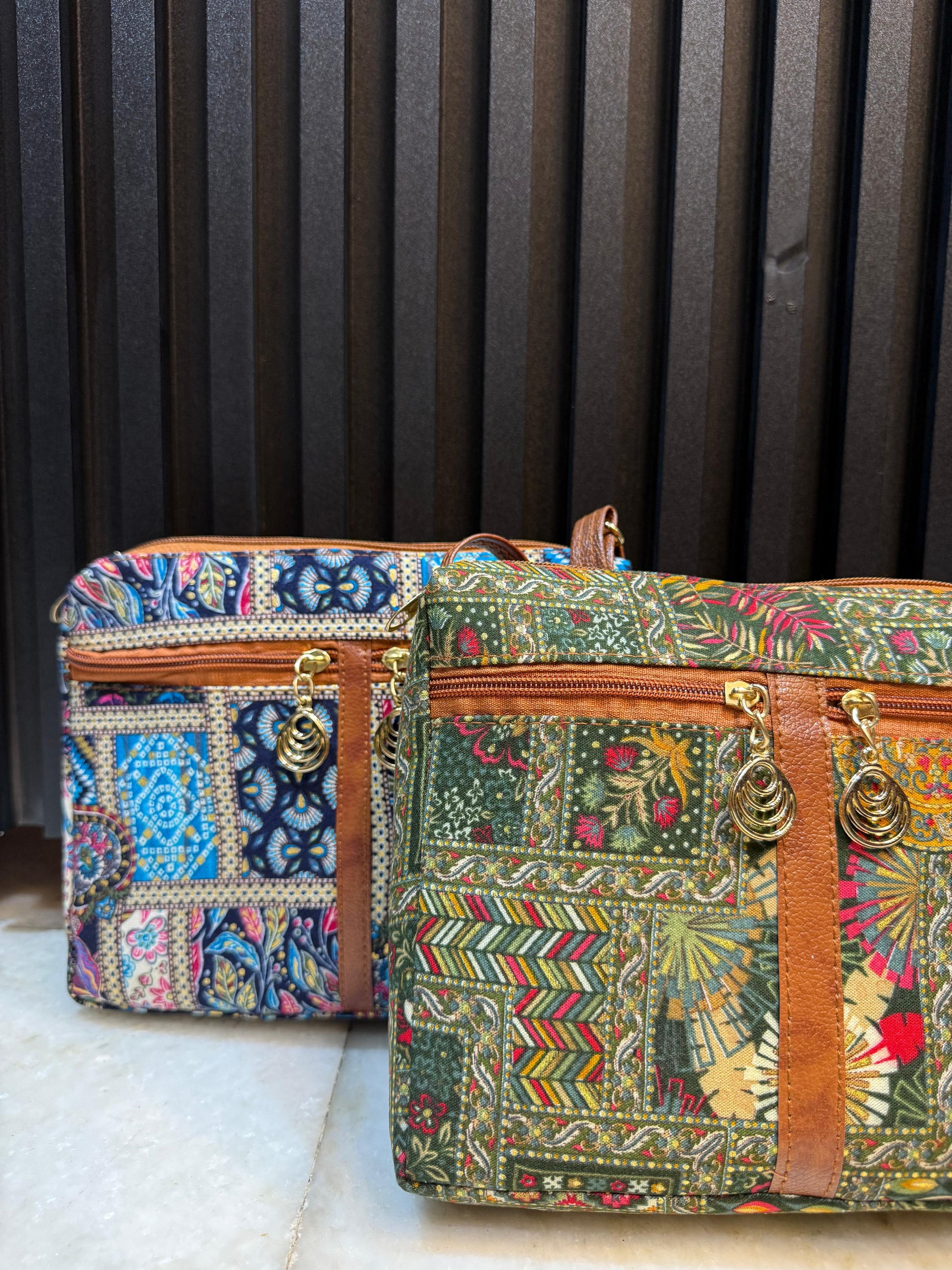 Step into the world of vibrant traditions with a modern twist! Our Boho Fusion Dual-Tone Sling Bags are a must-have for every fashion-forward woman. With beautiful ethnic embroidery, eye-catching mirror work, and golden metal charm detailing, these bags blend style and utility effortlessly.