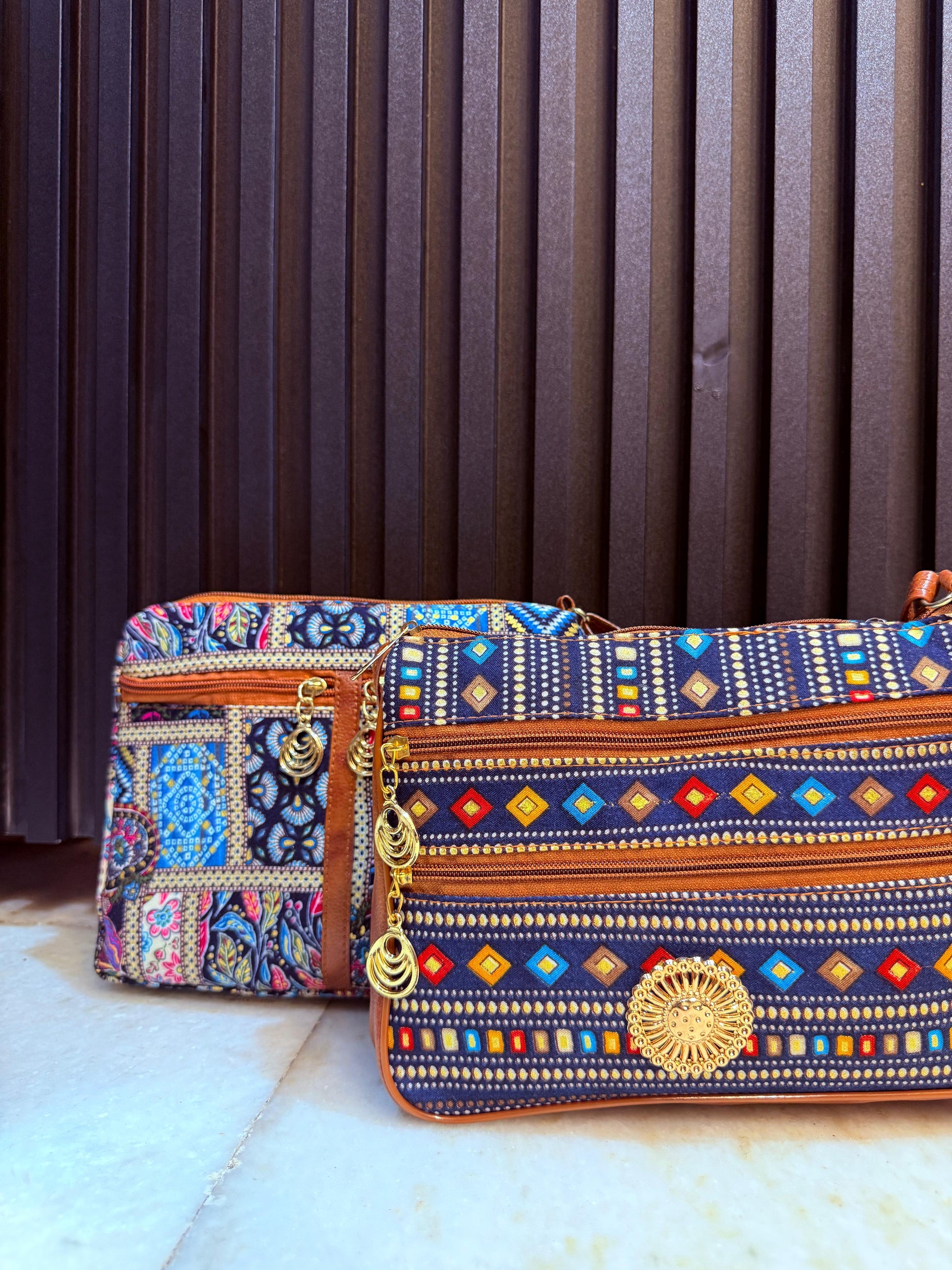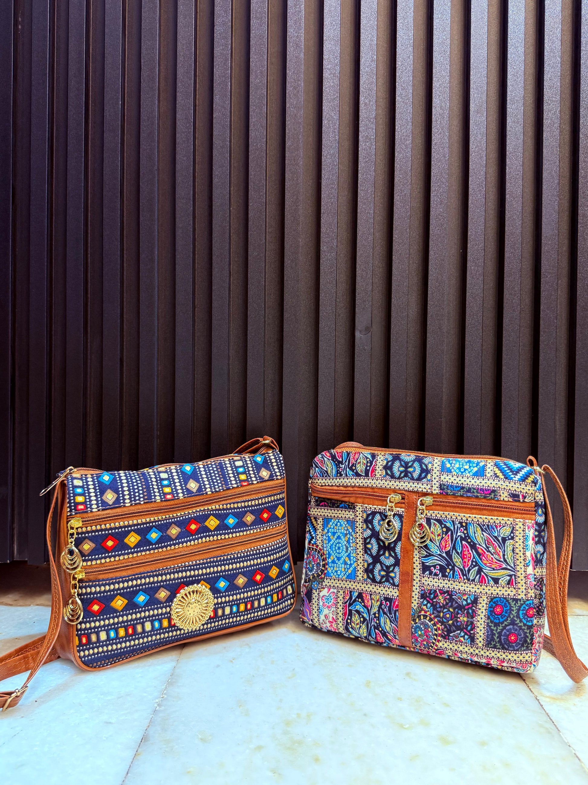 Step into the world of vibrant traditions with a modern twist! Our Boho Spirit Dual-Tone Sling Bags are a must-have for every fashion-forward woman. With beautiful ethnic embroidery, eye-catching mirror work, and golden metal charm detailing, these bags blend style and utility effortlessly.