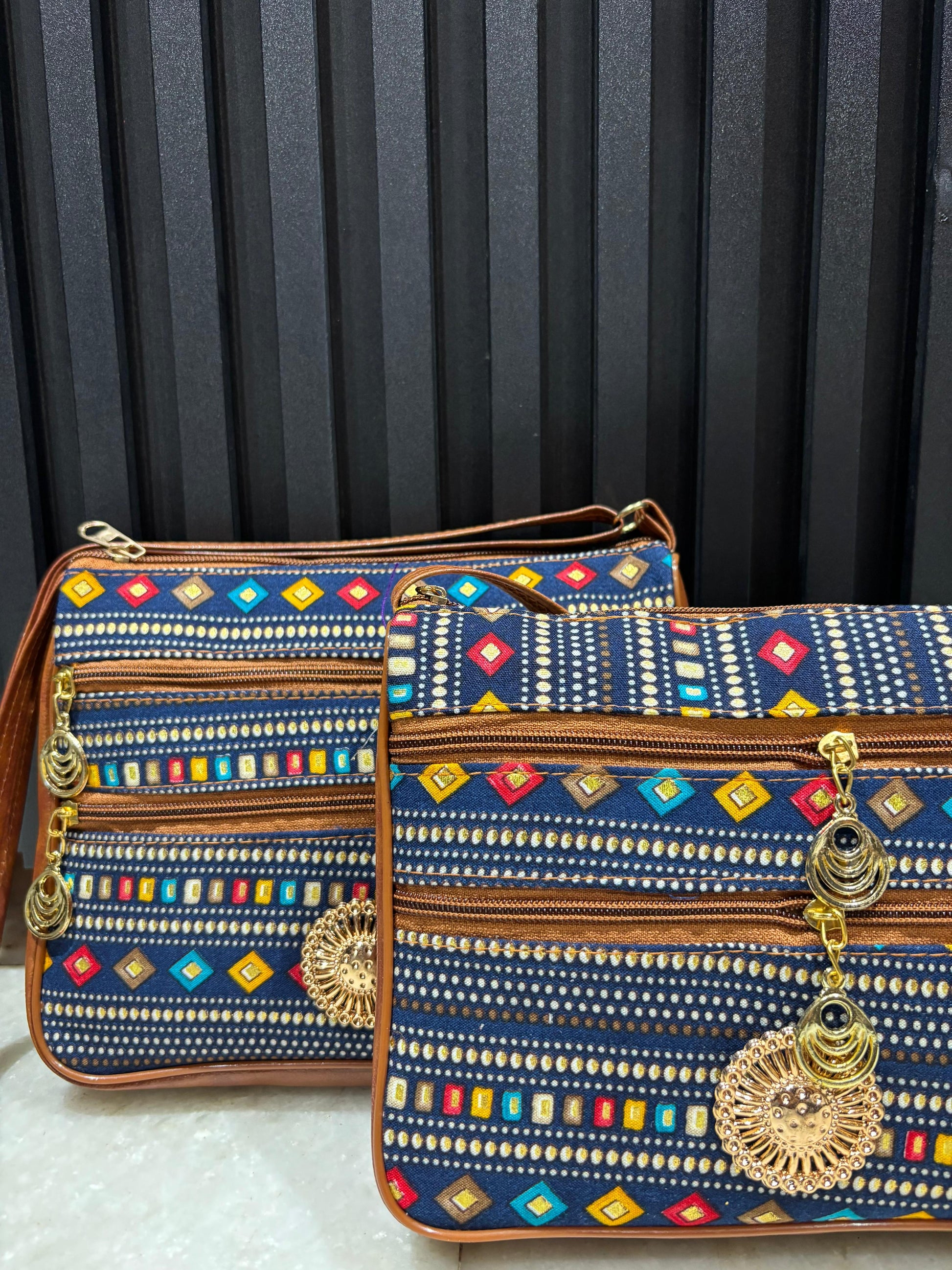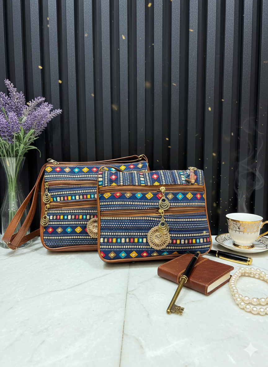 Step into the world of vibrant traditions with a modern twist! Our Poco Ace Dual-Tone Sling Bags are a must-have for every fashion-forward woman. With beautiful ethnic embroidery, eye-catching mirror work, and golden metal charm detailing, these bags blend style and utility effortlessly.